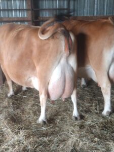 - His dam was one of the best uddered Miniature Jerseys produced to date in our breed. I lost track of her at age 12 when she was still producing calves. She had excellent milk production giving 5 gallons on a 2x a day milking at age 12. Exceptional udder attachment as an aged cow. High butterfat and excellent cheese production.